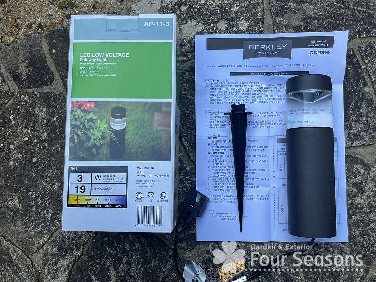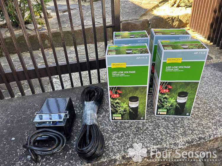 普段は当店のネットショップでも取り扱っているライトを今回はお庭に取り付けました。この商品低電圧12Vということで お客様がDIYでも簡単に設置することができます。今回は作業も依頼されましたので設置しました