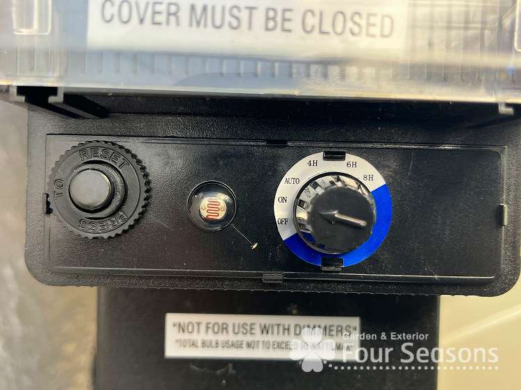 その後 タイマー設定を行います。好みの点灯時間を設定できますが 今回は暗くなって点灯、朝明るくなってきたら消灯ということでAUTOで確認します