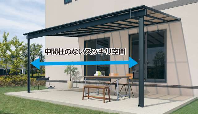 柱の立てられない場所でも取り付けが可能な柱なし式。