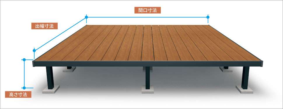 ![]() 大引き位置 デッキ側面より大引き小口を内側にセットバックさせ、浮遊感を演出します。 |