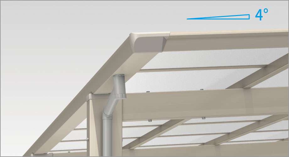 住宅の水平ラインと合わせやすい小さい屋根勾配(4°)