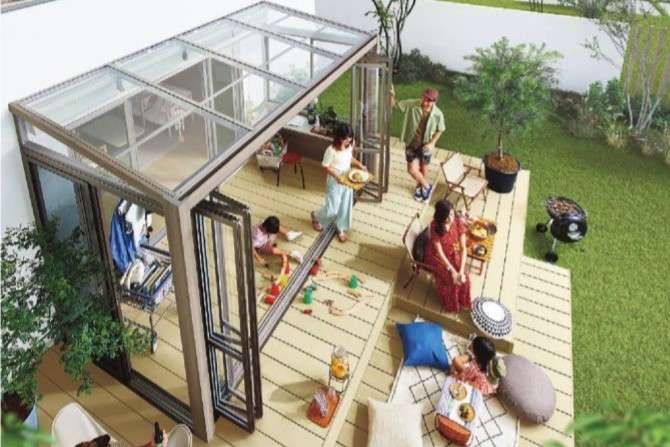 2-3 家族が集うタイルテラス&ガーデンルーム