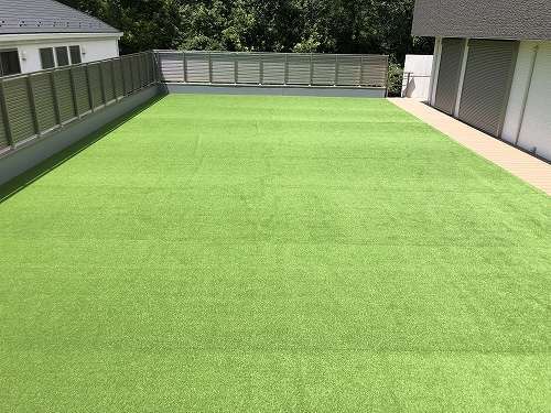 神戸市個人邸 ガレージ上にLIXIL樹ら楽デッキと人工芝敷設/