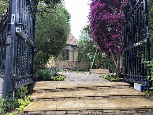 西宮市の山手エリアには、落ち着いた高級住宅街が多くあります。ここでは、建物と庭の統一感を意識し、石材やタイルを使用した品格のあるデザインが好まれます。