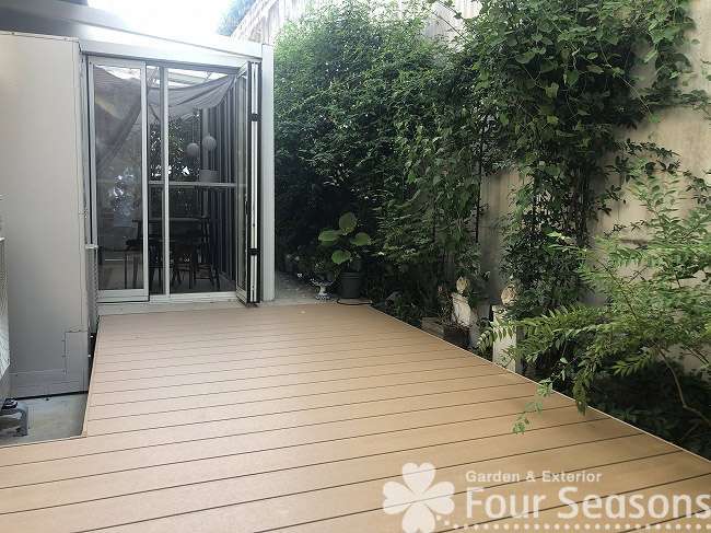 ウッドデッキや人工芝で子ども・ペットと遊べる庭
