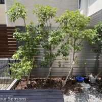 今回は木目のフェンスを取り付けたので仕上がりもナチュラルに。間仕切りフェンスということで今回は裏表を反対にして取り付けてご自身のお庭からすっきりとみえるようにいたしました。普通はフェンスのパネルの裏側を中庭からみると柱や構造面が見えるのですが、今回は間仕切りということでお隣様しか見えないため、逆にフェンスを取り付けています。目隠しやフェンスの劣化などでお悩みを抱えている方はお気軽にお問合せくださいませ。