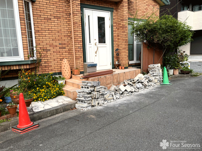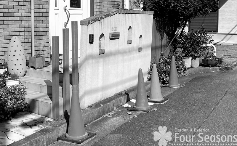 ブロックが道路側に傾いており、いつか倒壊するのではないかと心配になってお店に来店されました。