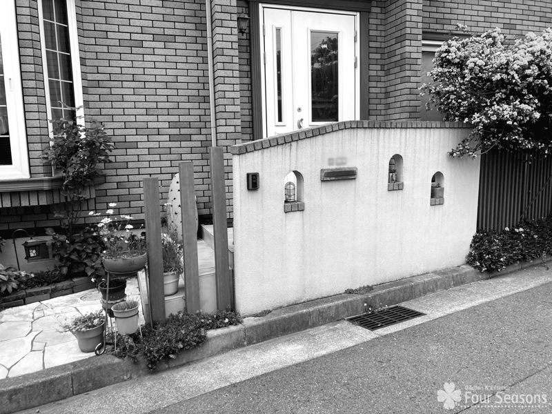 門柱に3か所で開口部をつくり、ディーズガーデンの【アールフィックス2型】でアクセントしてみました。