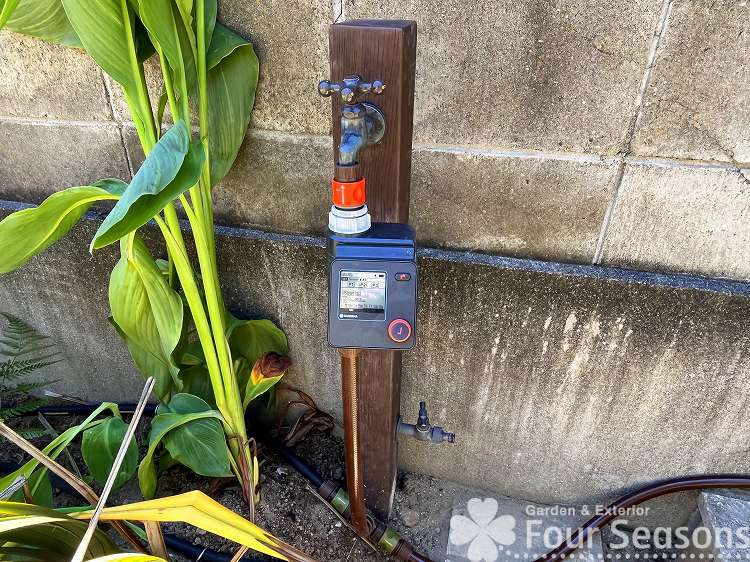 元々あった立水栓は再利用して 安易な自動潅水装置を取り付けました