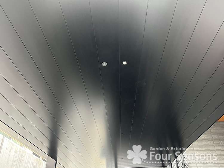 完成の写真です。黒の家とマッチしています。また、雨の日も濡れないで玄関に入ることができるようになりました