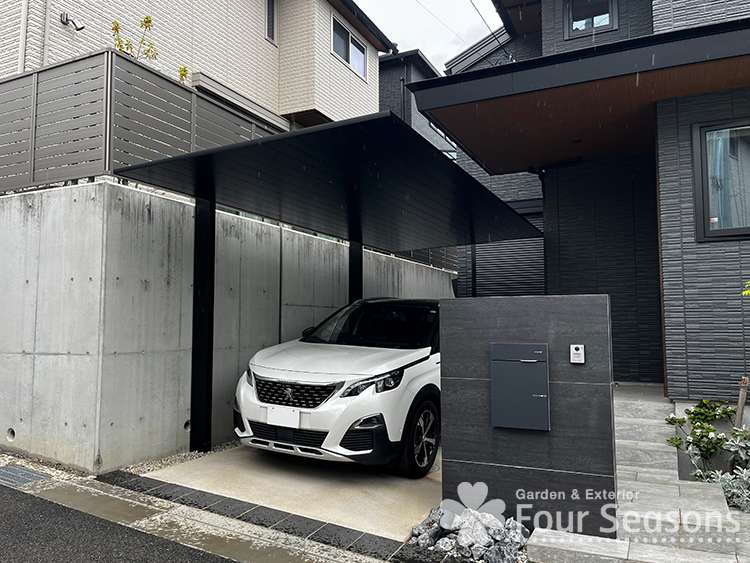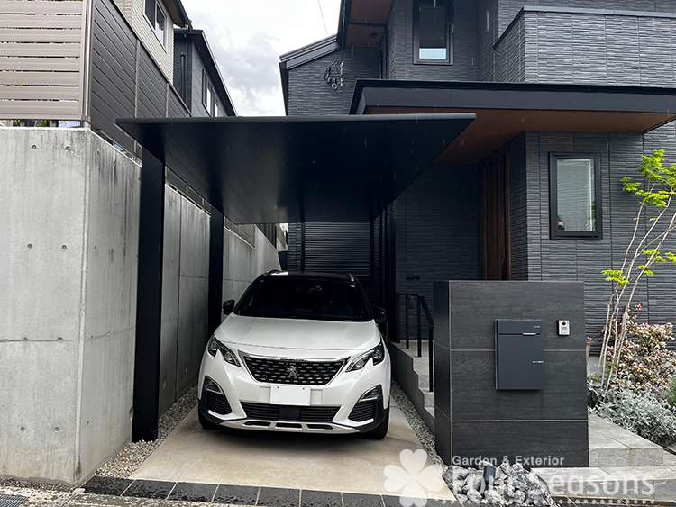 神戸市で人気のカーポート LIXIL カーポートSCの設置を行ってきました/ ブラック一色で引き締めて