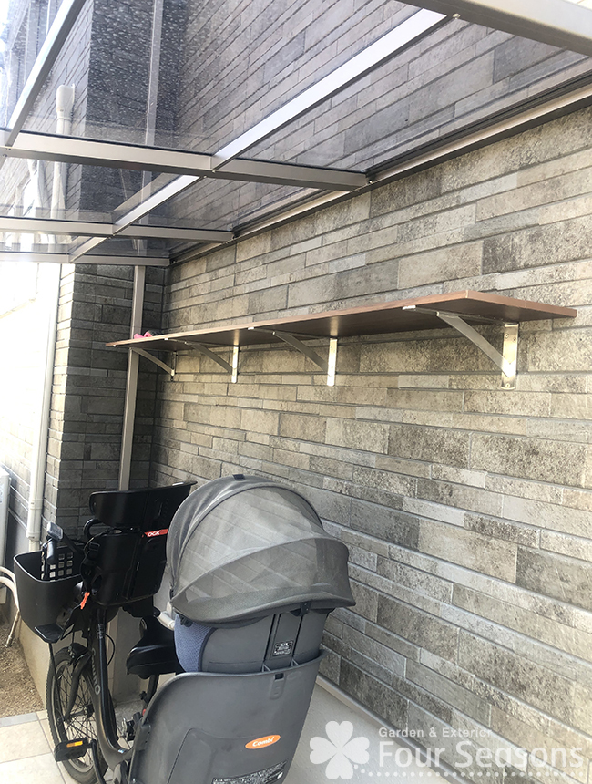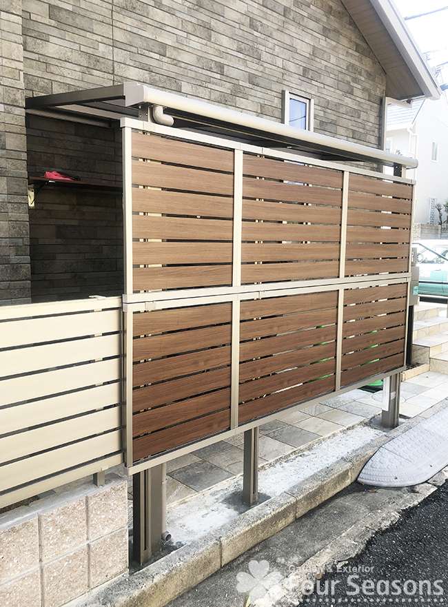 物干しの屋根を取り付けて、目隠しのフェンスを組み合わせました。