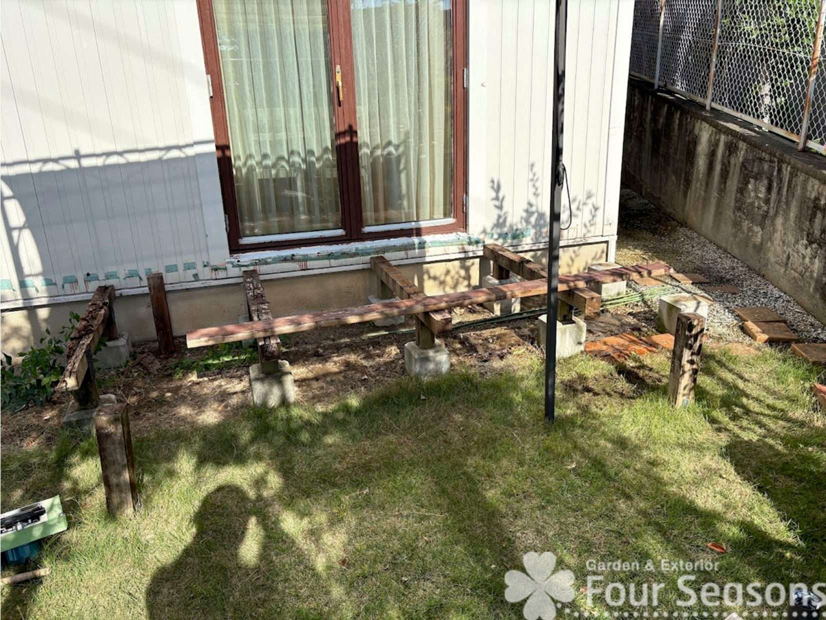 左手側の机とイスがある部分のウッドデッキは屋根の下にあるということで朽ちておらずそのままでいいということで、今回撤去したのはそれ以外の箇所になります。