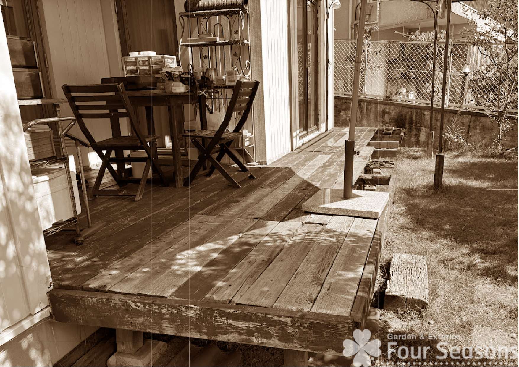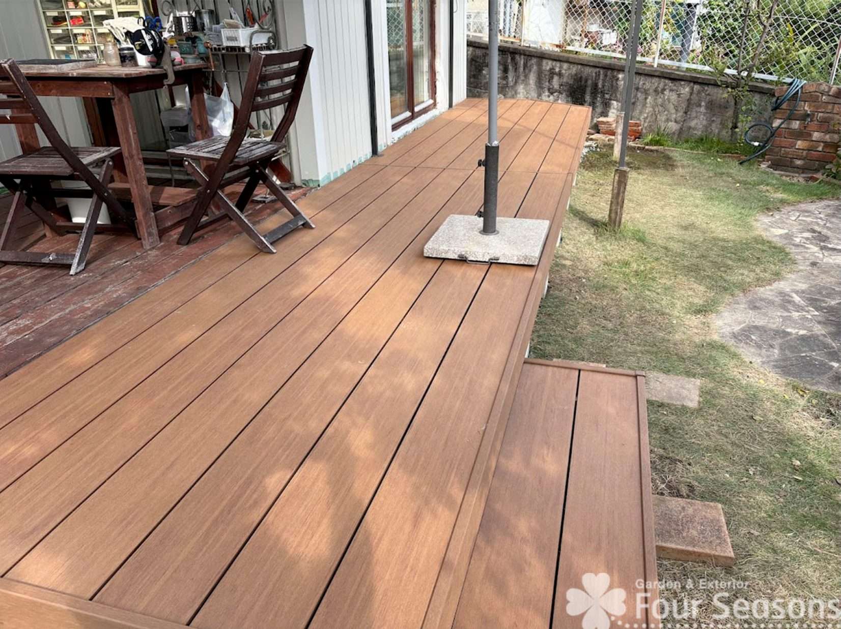 既設の天然木のウッドデッキが朽ちてきたので人工木のウッドデッキにしてほしいという内容でした。