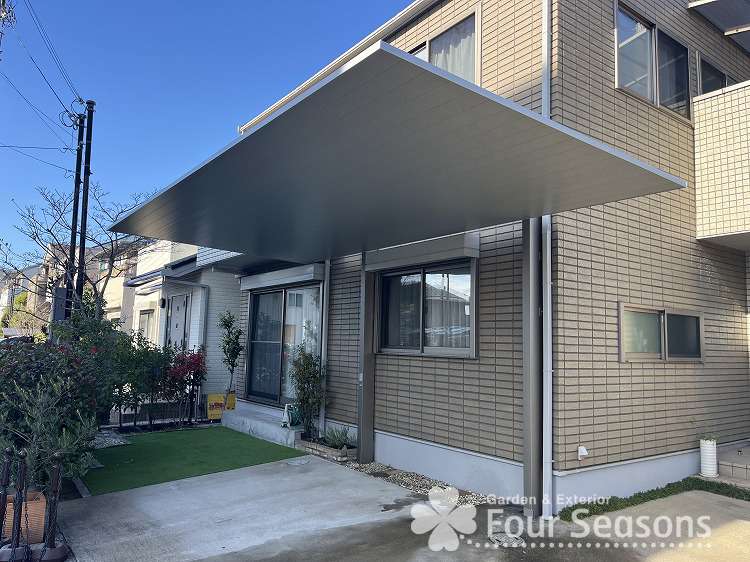 阪神間でお庭造りをしていますフォーシーズンズ中田です 今回はカーポートSCを取り付けました。と言っても 20年前に取り付けましたカーポートのやり替えとなります