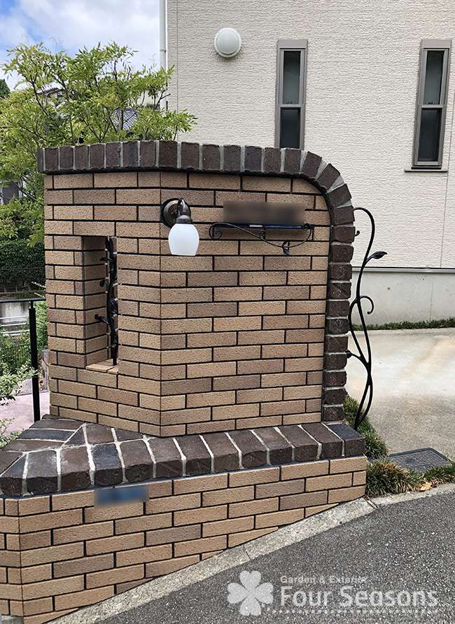 タイルを張ることで汚れにくく、見た目も華やかになる門柱