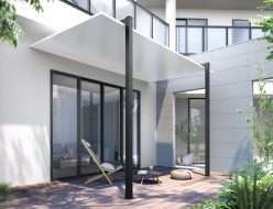今回ご紹介するのは、三協アルミから発売中宇カーポート【セルフィ】です。特長-パネル-透過性がなくマットな質感の屋根材 ブラックポリカーボネート板を追加。本体色のブラックを合わせてシャドークールなカーポートを演出します。